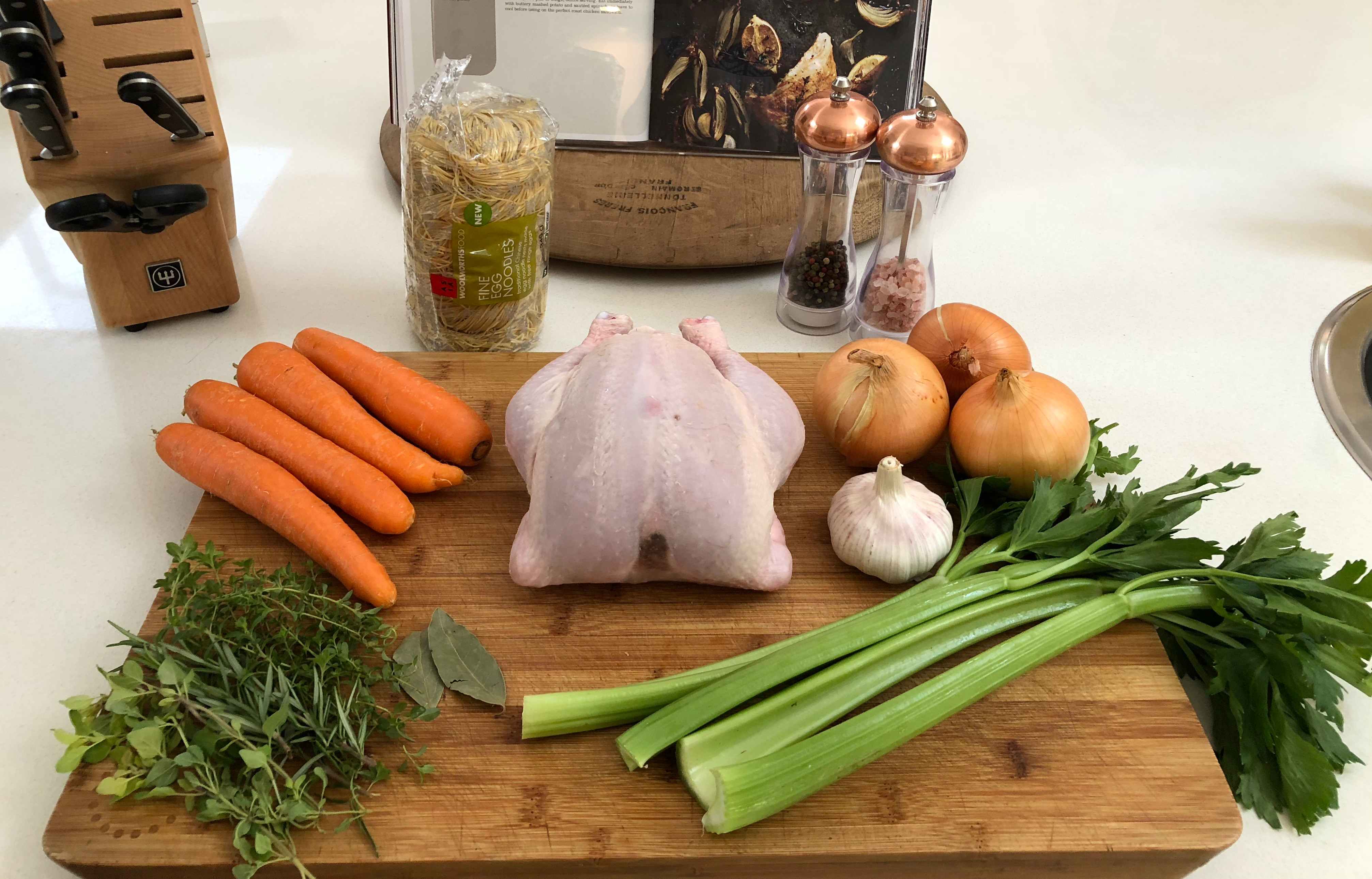 If you know of someone who has a heavy heart right now and you have no words, here’s a simple but heart-warming offering: chicken noodle soup. It’s a bit of work, but worth the effort. And if you make it over two days it always feels a little simpler…
